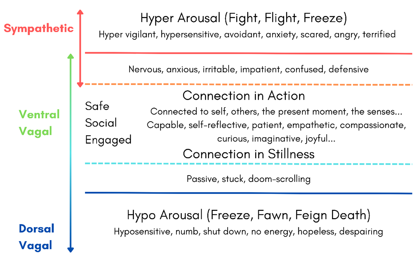 Polyvagal theory describes three broad autonomic states that we move between in daily life: