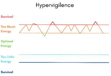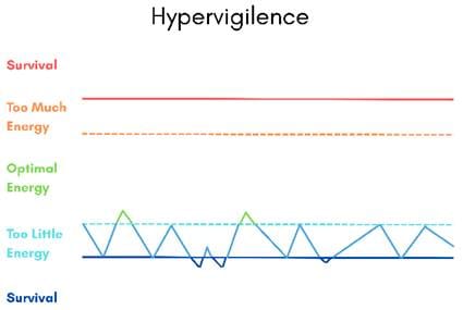 This may seem paradoxical, but, viewed through the nervous system lens above, it makes complete sense. A hypervigilant nervous system is going to be hypersensitive to input, while the dorsal vagal response is associated with numbness and disconnection.